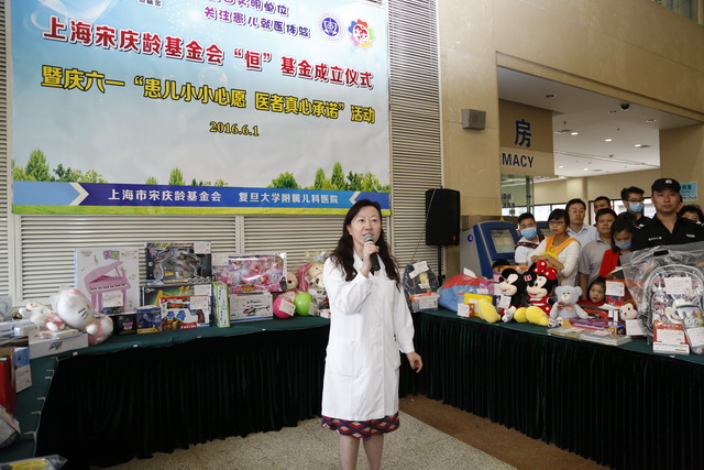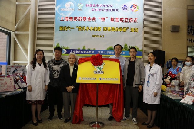 上午11点,在复旦大学附属儿科医院门诊大厅,“上海宋庆龄基金会.恒基金”项目启动仪式正式举行,上海宋庆龄基金会副主席谢丽娟女士,上海市卫生和计划生育委员会主任邬惊雷教授,上海宋庆龄基金会副秘书长杨晔先生、张厚业先生,恒基金项目发起人上海欢愉科技网络有限公司冯显超夫妇、上海三叉戟信息科技有限公司张剑福夫妇以及复旦大学附属儿科医院副院长王艺教授,党委副书记张瑾教授,重症医学科主任陆国平教授共同为“恒基金”揭牌并发表讲话。