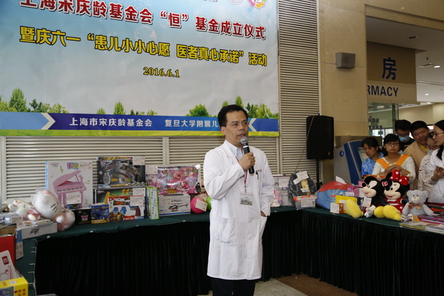 上海市卫生和计划生育委员会主任邬惊雷教授说:“作为曾经儿科医院和重症监护室的一员,参加今天的活动我感到非常高兴。特别是对社会爱心人士的捐赠表示感谢,慈善对儿童健康事业的支持是我们社会的进步。‘恒基金’的寓意深刻,1. 对于基金会而言:表示爱心永恒,天长地久;2. 对于捐赠者而言:寓意事业永恒,幸福美满;3. 对于儿童医疗事业而言:希望儿童医疗事业永恒,未来发展兴旺。祝小朋友六一快乐!祝对儿科健康事业做出贡献的爱心人士永远快乐!”