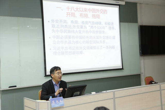 苏长和教授首先就《习近平谈治国理政》中的外交内容进行讲解。他为我们详细阐述习近平总书记在外交领域提出的一系列新理念、新思想、新战略以及有中国特色的大国外交理论。十八大以来,我国外交开局、布局、格局气势磅礴,积极进取,志向高远。中国与世界关系发生了历史性的变化,中国坚定不移地走和平发展道路,更加重视内政外交国防统筹,构建合作共赢为核心的新型国际关系,推动全球治理体系改革提高中国国际话语权。随着我国综合国力、国际竞争力、国际影响力迈上一个大台阶,经济文化交流、科技交流日益频繁,文明因交流而多彩,文明因互鉴而丰富。苏教授的讲解深入浅出,在我院医务工作者中引起共鸣,大家从医疗、科技工作者的视角纷纷提问,就我国医学、科技领域交流在外交中的作用进行探讨。大家一致认同,在做好国际交流的同时,要时刻以国家利益、人民利益为重,做好科学技术保密工作。