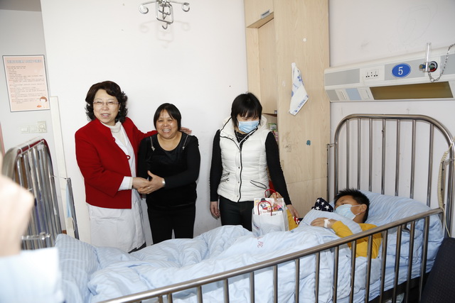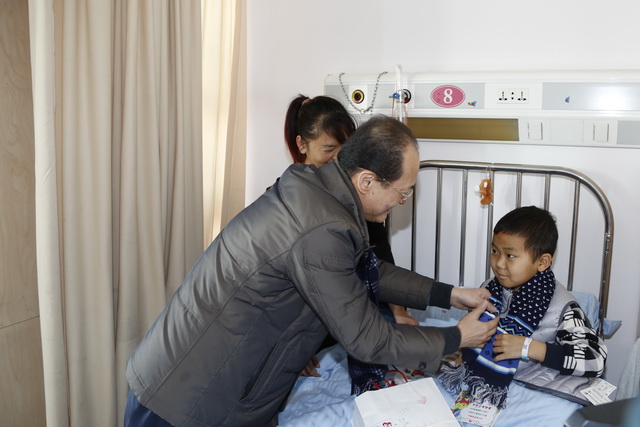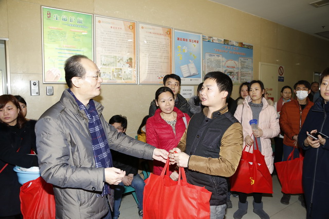 在重症监护室外,很多家长因为牵挂孩子,虽然不能陪伴在身边也不轻易离开医院回家,他们坐在监护室门外的椅子上,脸上难觅新年的喜悦。党员志愿者们将装着毛毯、热水袋、保温杯、爱心卡的爱心大礼包送到了每一位重症患儿家长的手中,监护室增加了节日探视时间。疾病无情人有情,医护人员的慰问给焦虑的家长们送上了一份安慰和鼓励。