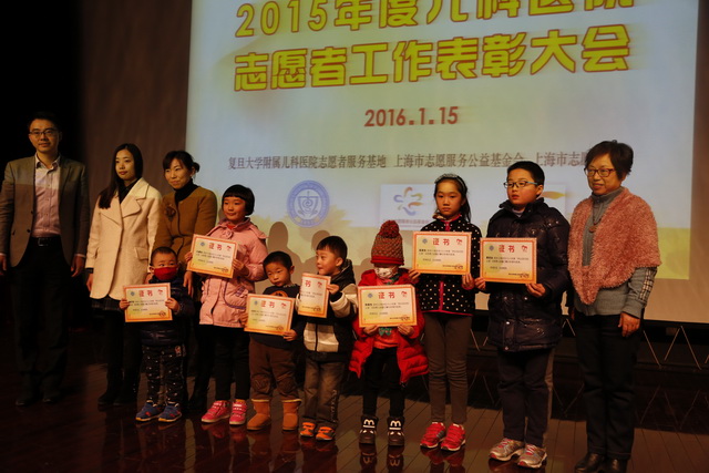 为表彰和激励在复旦大学附属儿科医院参与志愿服务的志愿者们,同时也为了结合儿科医院关注患儿就医体验项目并契合全国文明单位的申报,1月15日,来自院内外200多名志愿者代表齐聚在儿科医院 ,出席2015年度儿科医院志愿者工作表彰大会。