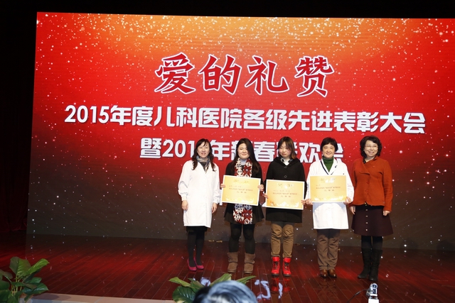 2016年1月29日,儿科医院2015年度各级先进表彰会在儿科医院学术报告厅隆重举行,表彰大会由张瑾副书记主持。黄国英院长首先致新春贺辞,同时对全体职工一年来的努力和所取得的成绩给予高度肯定,并对获奖先进集体及个人表示热烈的祝贺。接着张瑾副书记宣读2015年先进名单,今年特别推出儿科医院各级先进网上评选投票环节,并由徐虹书记当场揭晓获奖名单,大家热情参与,反响热烈。过去的一年,涌现出一大批的先进集体和个人为儿科医院添光增彩,他们是儿科精神的代表与传承人,从今往后,他们还将继续为儿科医院的未来添砖加瓦。之后,院领导对2015年度获奖的先进集体和个人进行了表彰。