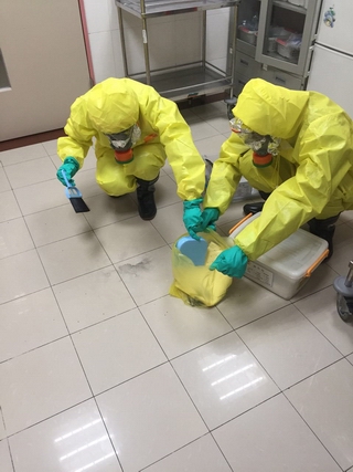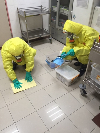 为进一步增强应对和防范危险化学品事故风险、灾难的能力,医院于今年1月7日组织了首次危险化学品泄漏的应急演练。