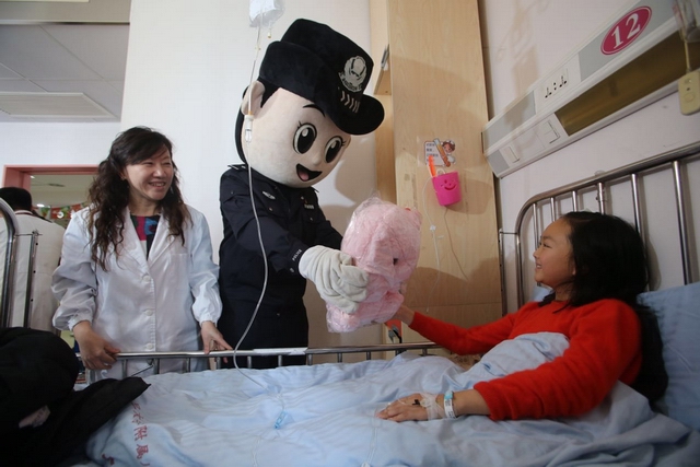 2015年12月31日,复旦大学附属儿科医院举行住院患儿新年慰问活动。儿科医院团委联合上海市公安局、梅陇镇镇政府、东航330班机组、上海市浦发银行古美西路支行、古美街道团工委等团委青年联合慰问住院患儿约700名。