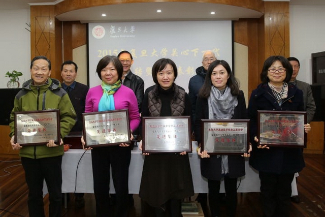 12月23日, 复旦大学关心下一代工作委员会年度工作总结暨先进表彰大会举行,会上表彰了复旦大学关工委各类先进名单,复旦大学关工委常务副会长张永信老师、原复旦党大学委书记钱冬生老师为获奖集体及获奖者颁奖,复旦大学党委副书记、关工委会长陈立民出席会议并讲话。我院关工委荣获2015年复旦大学关工委工作先进集体,医院关工委会长朱启镕教授荣获2015年复旦大学关工委工作先进个人。
