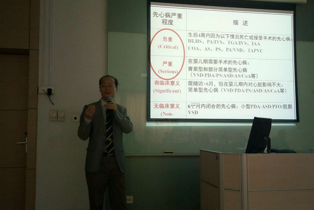 开班首日,我院黄国英院长首先寄予全体学员热情洋溢的致辞,随后围绕“经皮血氧饱和度测量方法”对“新生儿先心病筛查方案的建立与验证”作了精彩报告。黄院长所作报告彰显了本届学习班的特点:密切结合临床实际,体现小儿心血管功能及心电技术检测方法的实用性和先进性。学习班的课程涵盖超声心动图、核医学、磁共振等影像技术对小儿心血管功能的评价;小儿动态血压监测、无创性脉搏波速度、血管内皮功能检测、直立倾斜试验在血管病变中的应用;以及起搏器的安装、射频消融术、先天性心脏病术后心功能不全的监测与处理、6分钟步行试验等内容,为小儿先心病、川崎病、晕厥等血管功能性疾病的诊治增加助力。国内知名教授北京大学第一医院杜军保 、上海市第六医院侯月梅、 复旦大学中山医院林靖宇及我院心血管中心各部门、核医学、放射科的专家分别担任了授课教师。