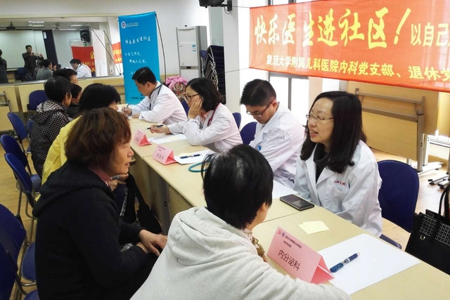11月10日下午,内科党支部的陆忠、沈茜、徐家骅、黄剑峰及入党积极分子孟建华五位医生从繁忙的工作中抽出时间,来到古美街道平阳一村居委会开展“快乐医生进社区”儿童医疗保健健康咨询会。在数小时的义诊中,“快乐医生们”耐心细致的解答了社区群众的健康咨询,内容涵盖疾病诊疗,预防保健多个领域。居民们十分欢迎这种形式的医疗服务,纷纷认为这样能获得更充裕的时间与专家医生面对面的交流,希望下次多举办这样的活动。党员医生们在义务提供医疗服务的同时也将快乐传递到社区。