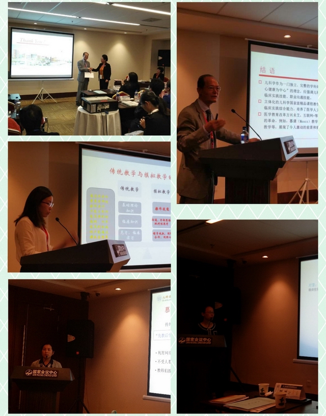 我院黄国英院长,吴静燕主任分别就“儿科立体化教学新模式”“simulation在儿科的实践”做了专题讲座。 黄国英院长针对儿科医学生的实际状况,结合儿科医院自身的教学实践,分享了教学过程中的宝贵经验,尤其指出目前立体化的儿科学国家精品课程教学体系塑造了医学生的儿科临床实践综合能力,培养了医学人文精神,扩展了国际化视野,互联网+时代下MOOC,模拟教学等现代化技术必将带来教学模式的新变革。吴静燕主任就我院在模拟教学方面的开展的工作与大家进行了分享。吴昊,张澜分别就“儿科毕业后临床教育环境预调查及因子分析”、“MOOC与翻转课堂的儿科教学模式探讨”在大会上做了学术交流。