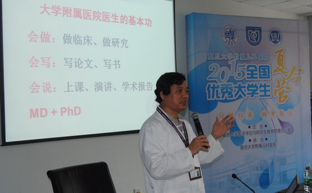 2015年7月22-24日,复旦大学附属医院2015年全国优秀大学生夏令营如期举行,此次夏令营旨在促进我国高校优秀大学生临床医学本科生之间的思想交流、加强青年学生对儿科领域的了解,特别是增加复旦大学的声誉,吸引优秀学生到儿科医院深造,构建交流的平台。