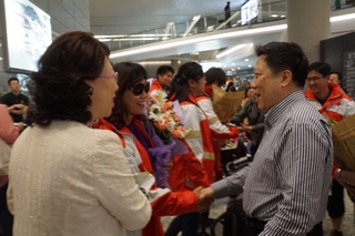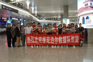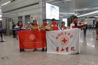 5月30日下午1时许, 第二批红十字援助尼泊尔医疗救援队员,我院重症医学科贡海蓉医生以及华山医院朱磊医生等一行六人顺利完成救援任务,辗转加德满都、拉萨、成都,安全抵沪。上海市红会党组书记、常务副会长高解春、市红会赈济救护部部长滕桂香、我院党委书记徐虹、华山医院副院长邵建华、华山医院党委副书记邹和建、华山北院副院长吕飞舟等领导前往虹桥国际机场迎接。
