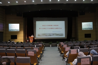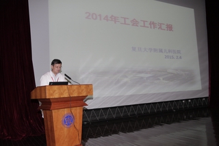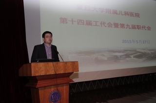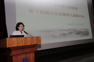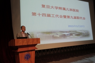 2015年5月27日下午13:30,在儿科医院学术报告厅举行了儿科医院第十四届工代会、第九届职代会。会上黄国英院长致开幕词,上海市医务工会常务副主席张浩同志致贺词,徐虹书记致闭幕词。会议由第十三届工会副主席韩春林同志主持,盛锋主席代表第十三届工会委员会做工作报告、财务报告。第十四届工代表共103位代表参加会议,选举出新一届工会委员15名、经审委员3名。