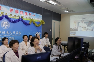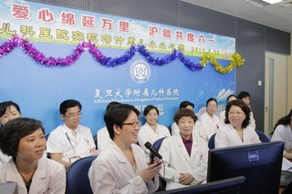 2015年5月28日下午,一场“爱心绵延万里,沪疆共度六一”的视频连线活动在复旦大学附属儿科医院举行。在六一儿童节来临之际,远在喀什的住院患儿,收到了来自上海儿科医生送上的节日礼物。