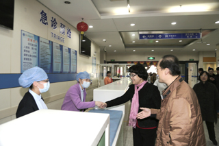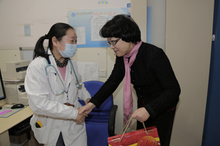 2015年春节前夕,上海市副市长翁铁慧一行来到儿科医院,亲切看望和慰问了工作在一线的医务工作者,为大家带去了春节的祝福。翁铁慧副市长等一行走访了急诊室并慰问当班医护人员,亲切询问了工作情况,并鼓励大家坚守岗位,做好春节期间的接诊工作。