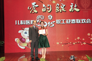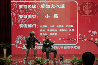 继2014年各级先进表彰大会后,“爱的绽放”新春联欢会隆重举行。新春联欢会在参赛人员精心准备下,呈现了小品、相声、扇子舞、曲艺、创意舞蹈串烧等精彩纷呈的节目,体现了儿科人的多才多艺,也体现了儿科文化的蓬勃发展。今年的新春联欢会还融入了新元素,传统曲艺表演甫一亮相即赢得满堂喝彩,创意舞蹈串烧“爱的炫动”以一种新颖的表现形式和轻放旋律令大家耳目一新。当然,节目也有不少表现医护人员日常普通小事,触动观众内心的表演,展现了可爱的儿科人不畏困难险阻,昂首迈步向前的坚韧精神。