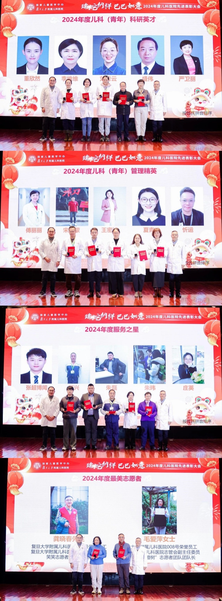 同时,为进一步弘扬儿科精神,强化医德医风建设,提升服务能力及服务质量,展现儿科医务人员“敬佑生命、救死扶伤、甘于奉献、大爱无疆”的先进典型,推动医院高质量发展,我院组织了各类评优评先活动,在大会现场进行了表彰。