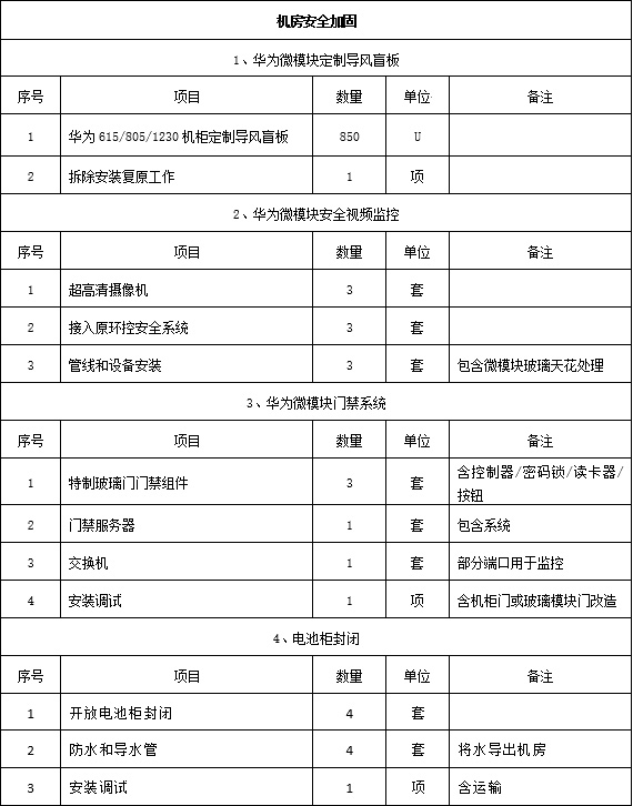 针对医院核心信息机房的3套华为模块机房进行安全加固,具体内容包括:
